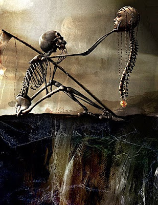 ¡Economía dixit! ¡Habemus dinero! Clamarán las campanas en las plantas más elevadas, desde el ático de la fortaleza del poder. El demonio no tiene rostro en materia de materialismo. No hay gato al que calzarle el cascabel de la “justicia” (¿divina? ¡ah-divina!). Arriba, el entramado se reduce apenas a unas hebras trenzadas y bien tensadas de oro, cuyo extremo y principio quedan ensombrecidas por su brillante esplendor. El ángel negro dorado. El ángel caído, a la cúspide de la Creación. Lucifer. Luz y hierro. Oro y Poder. Deseo y Ambición. Más allá de mero ser.